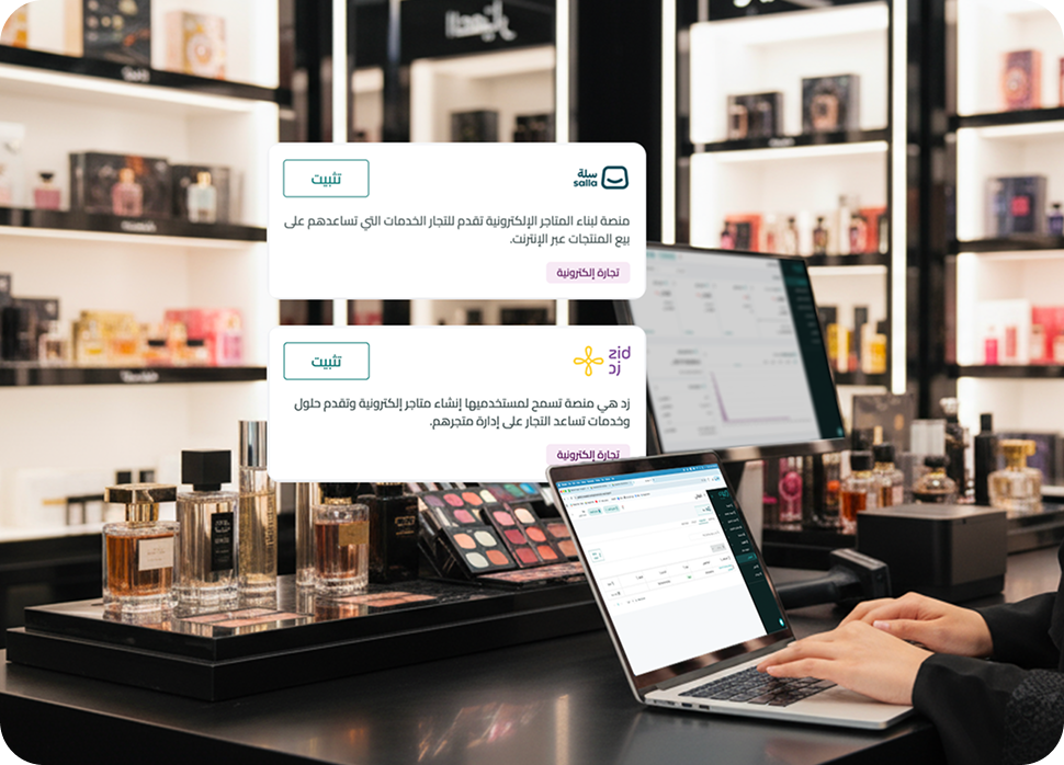 - طلبات العطور ومستحضرات التجميل من المتجر الإلكتروني تنعكس في برنامج إدارة محلات العطور بشكل مباشر ويتم ربط المبيعات والكميات بين الفرع والمتجر الإلكتروني بشكل مباشر.