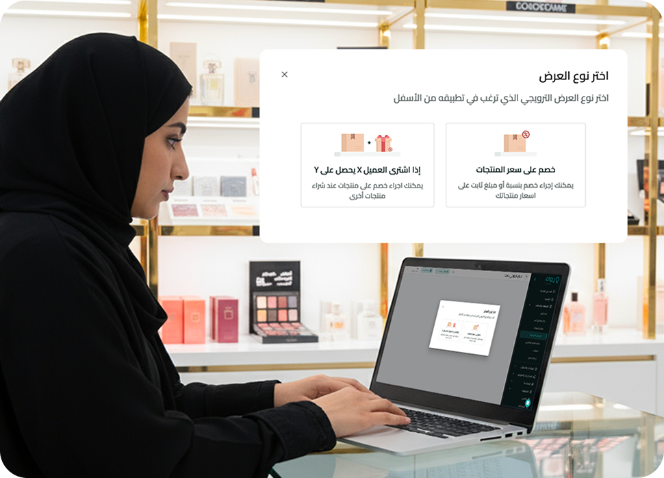 - تقدر تكوّن باقة مثل (3 عطور + بخور) وتسعّرها كمنتج واحد بسهولة أو تضيف عروض موسمية مثل عرض اليوم الوطني بخصم 50%.