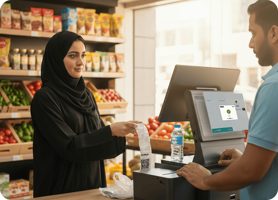 الكاشير يتمم البيعة ويطبع الفاتورة بثواني مهما كان عدد الزباين