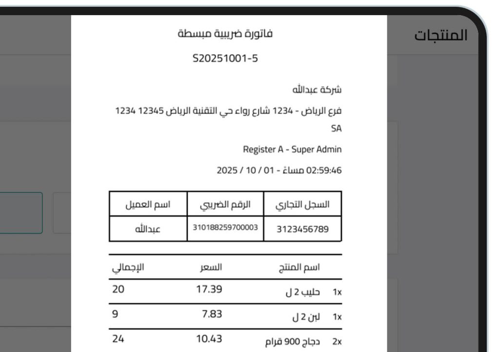 بمجرد ما تتم عملية الدفع، يتم إصدار الفاتورة تلقائيًا مطبوعة وإلكترونية، بدون أي خطوات إضافية.